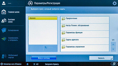 Персонализация предусмотрена не только для домашней страницы, но и для набора настроек, которые отображаются при выборе определенной функции, а кнопки для наиболее востребованных операций можно вынести в меню быстрого доступа, иконка для которого находится в левой части экрана, обеспечивая доступ к этим функциям без необходимости возврата на домашнюю страницу.