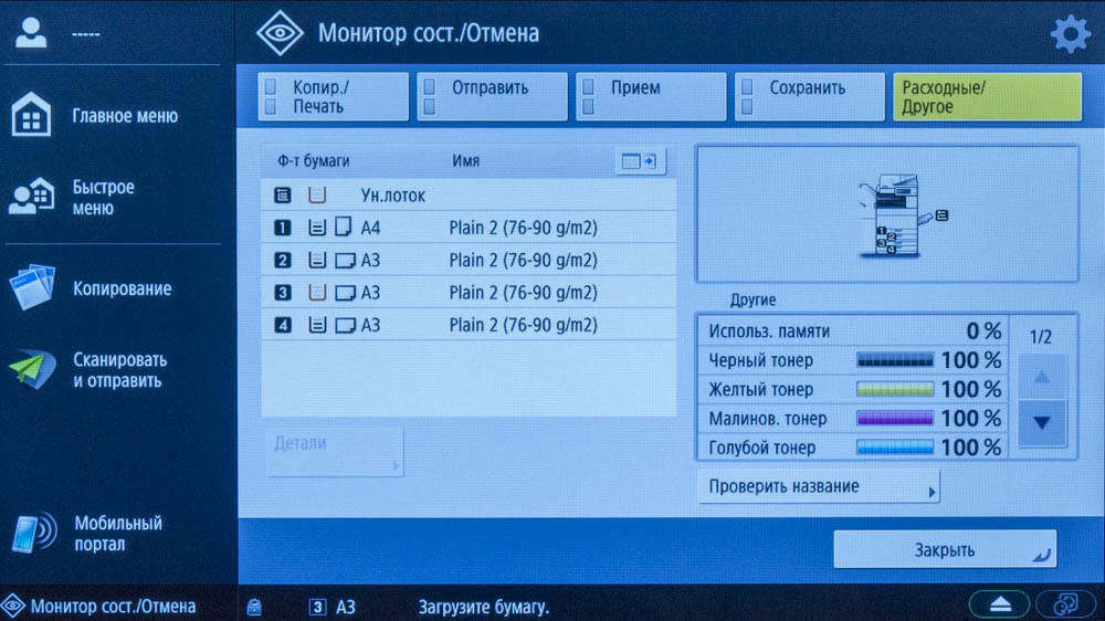 А вот с жесткими дисками такой номер не пройдет, тут вступает в действие еще одно ограничение — на файловые системы: для печати-сканирования с использованием сменных носителей Canon iR C5560i поддерживает только FAT/FAT32 (exFAT мы не пробовали), тогда как большинство дисков, включая SSD, отформатированы в NTFS. Впрочем, то же можно сказать и про другие современные принтеры и МФУ (по крайней мере, нам иного не встречалось).