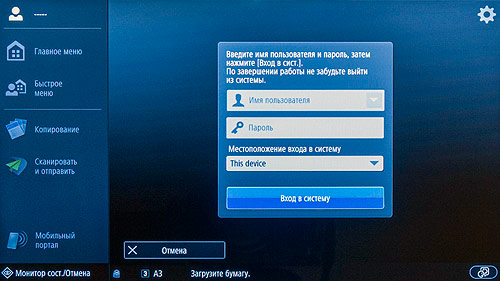 Служба входа (или приложение аутентификации) позволяет хранить данные о пользователях как во встроенной базе данных МФУ, так и на внешнем сервере. Само по себе определение пользователей призвано повысить уровень безопасности за счет ограничения доступа к функциям и сохраненным данным. Особенно это актуально, если аппарат установлен в месте, где могут находиться посторонние люди: можно попросту запретить несанкционированный доступ.
