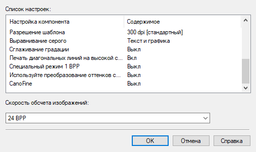 Для разрешения есть пункт «Разрешение шаблона» с установками 150, 300 и 600 dpi. Судя по изложенному в справке, шаблон - это и есть некий набор параметров печати. Напомним, что физическое разрешение печати 600 dpi.