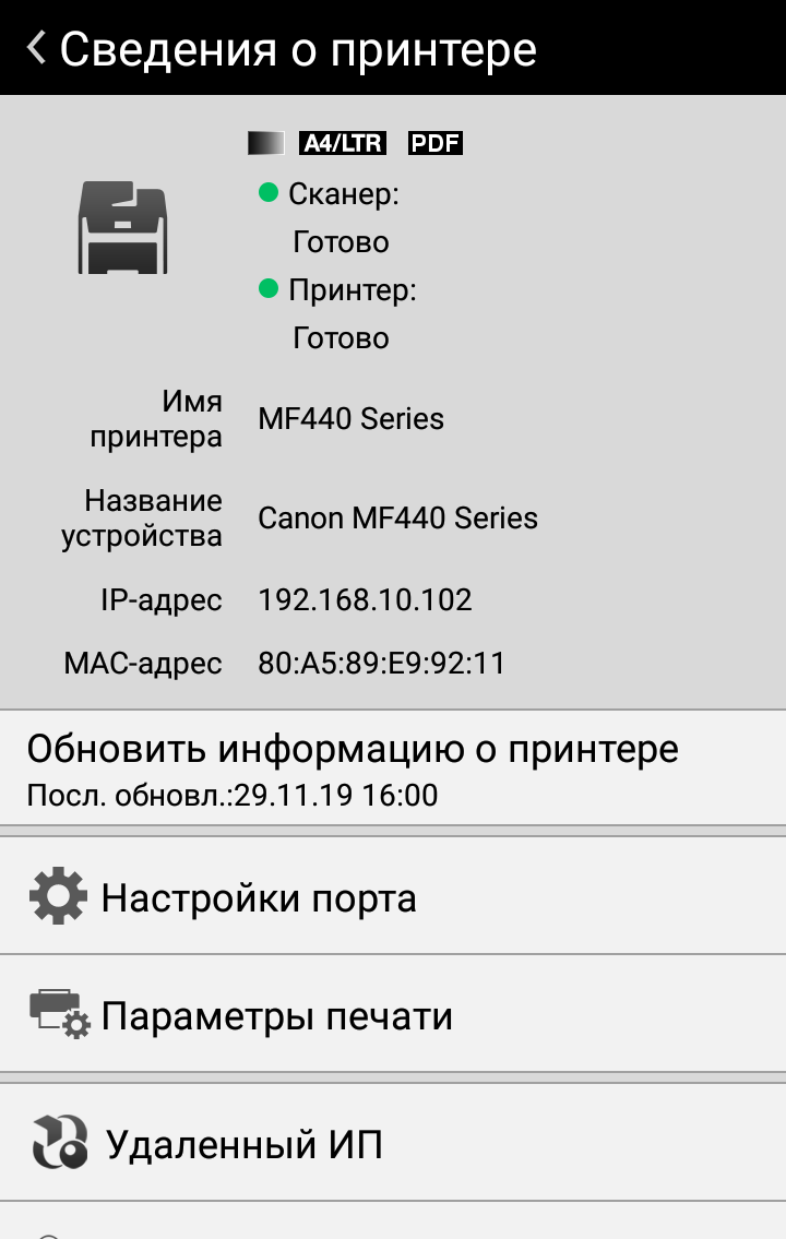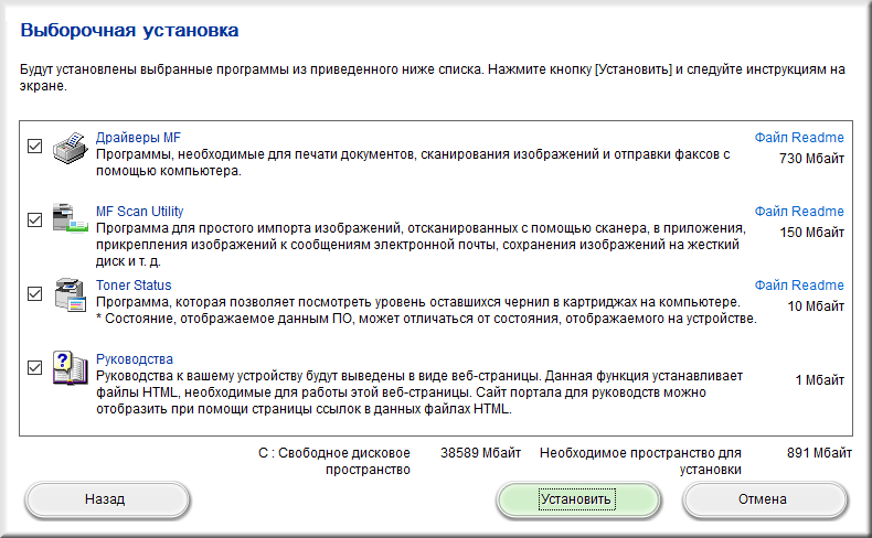 Установка ScanGear и Toner Status происходит без отличий от наблюдавшегося для USB.