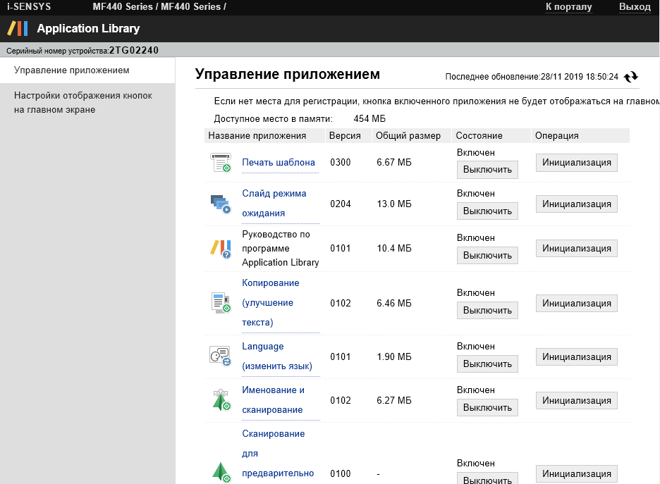 Если на панели управления открыта страница печати со съемного носителя, то отправленные с компьютеров через какой-нибудь интерфейс задания остаются в очереди до выхода с этой страницы — сделанного вручную или автовозврата к домашнему экрану после определенного интервала, заданного в настройках.